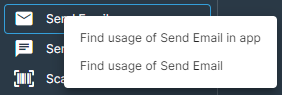For example, you may right-click the **Send Email** Action Node to see where the Action Node is used inside your App or globally (in all Apps or Services)